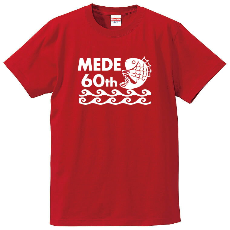 送料無料 お祝いTシャツ 還暦-めで鯛デザイン 左袖名入れします ご注文時、備考欄に名入れをご指示ください 素材:綿100% ・レディースサイズ ・大人サイズ と取り揃えておりますのでご本人様はもちろん ご親類、ご家族の方まで お揃いでご用意できます 還暦Tシャツ、還暦プレゼント、還暦ギフト 誕生日Tシャツ、還暦祝い、還暦パーティー【還暦祝いのTシャツです】 ★